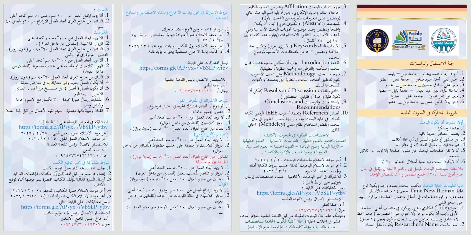 - آخر موعد لاستلام الصور والملخصات: 25 / 2 / 2026